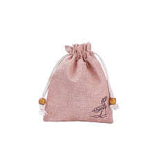 Мешочек из искусственного льна с орнаментом 15х12 см, нежно-розовый Мешочек из искусственного льна с орнаментом 15х12 см, нежно-розовый