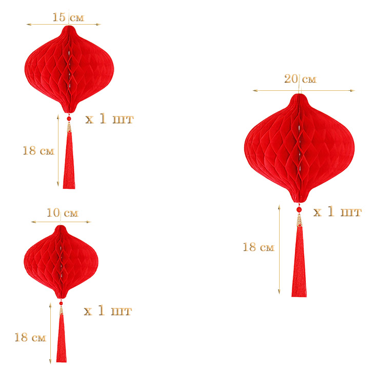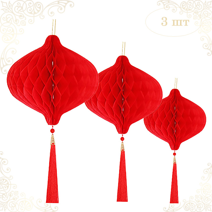 НАБОР бумажное украшение Шары-соты с кисточкой, красный - 3шт: