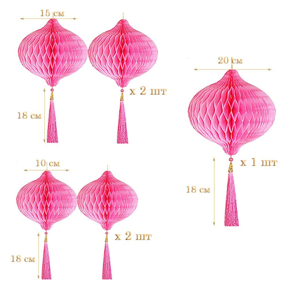 НАБОР бумажное украшение Шары-соты с кисточкой, розовый - 5шт: