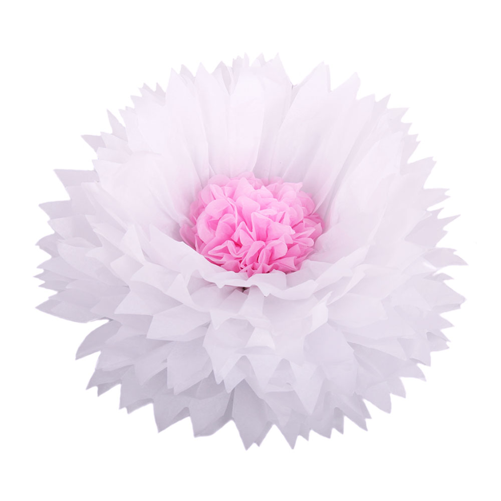 Бумажный цветок 40 см белый+розовый