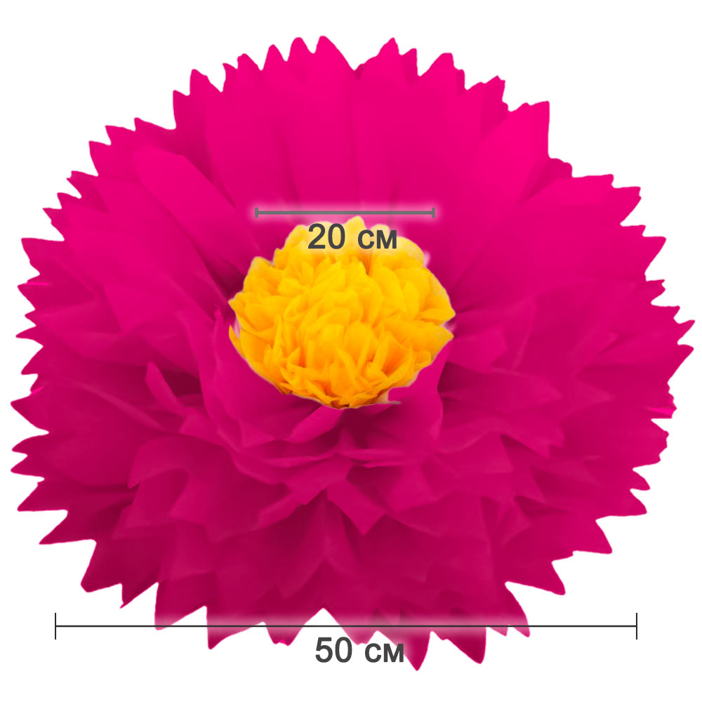 Бумажный цветок 50 см малиновый+ярко-желтый
