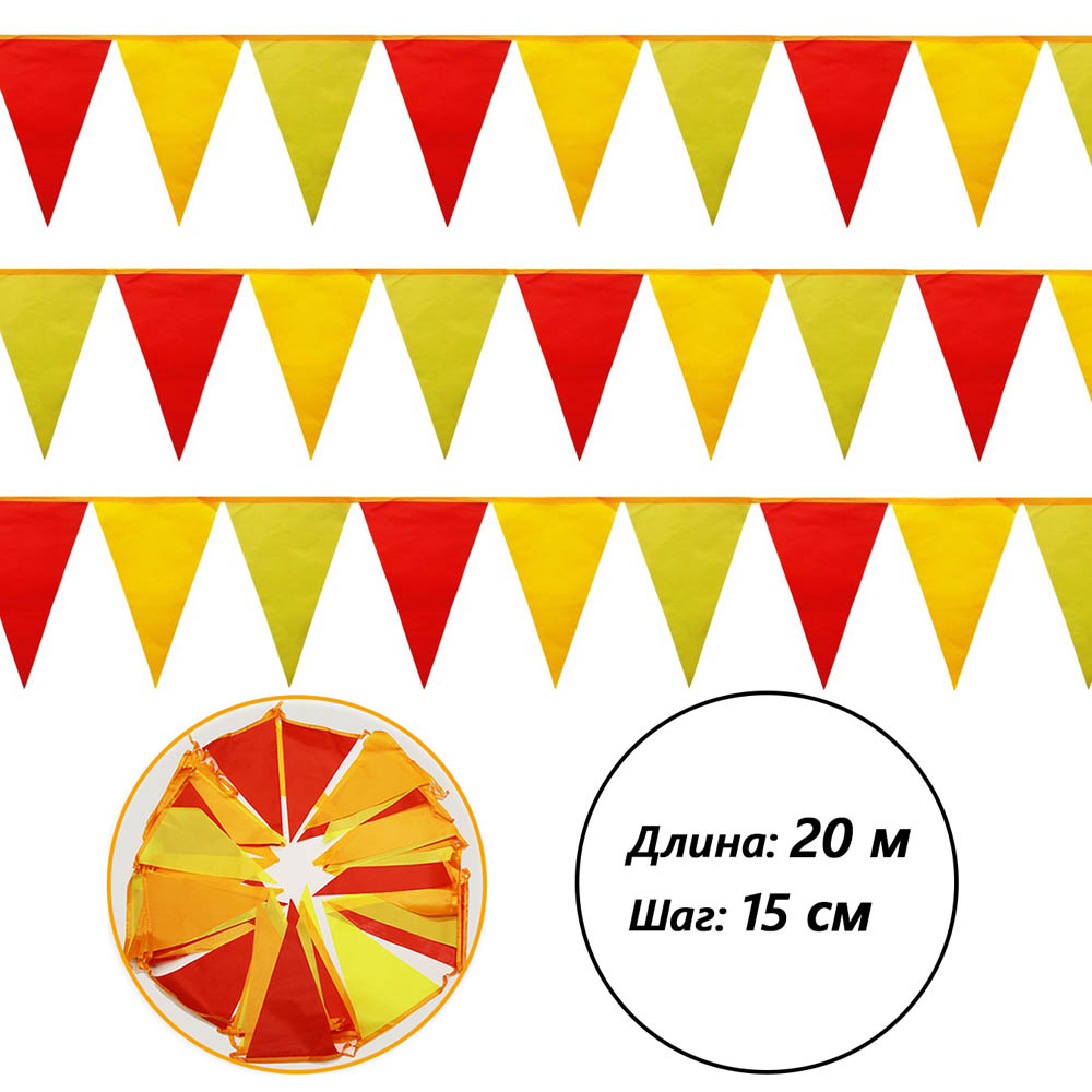 Гирлянда флажковая уличная 20 м, шаг 15 см, Солнце