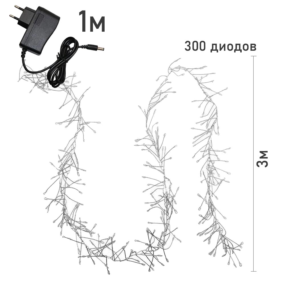 Гирлянда LED Роса-Мишура от сети, 3м х 300 диодов, синий