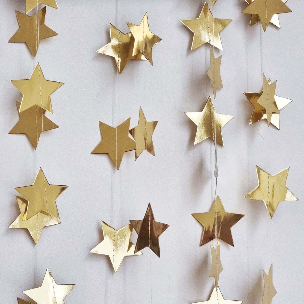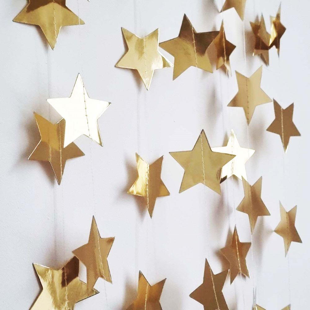 Гирлянда Звезды металлик 7 см 4 м золото