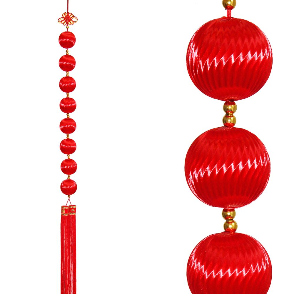 Коллекция подвесных шаров в традиционном китайском стиле. Легкие пластиковые шары плотно обвитые шелковыми нитями насыщенного красного цвета, создающими эффект мерцающего перелива при свете.