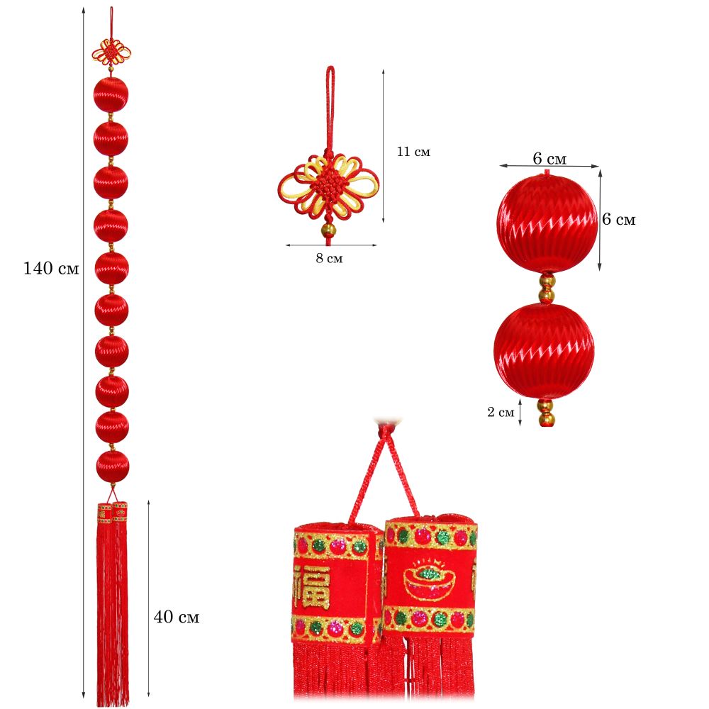 Коллекция подвесных шаров в традиционном китайском стиле. Легкие пластиковые шары плотно обвитые шелковыми нитями насыщенного красного цвета, создающими эффект мерцающего перелива при свете.