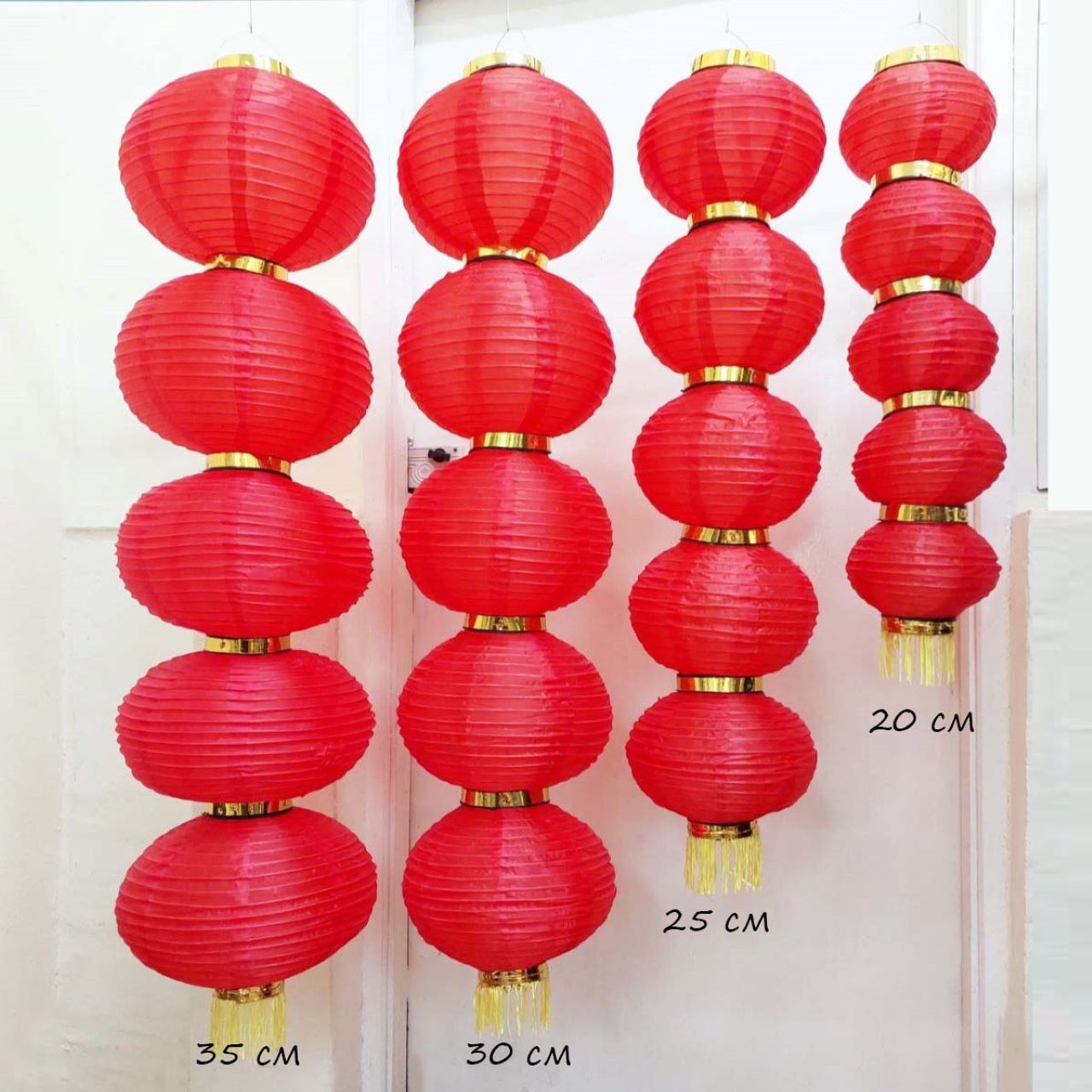 Круглый китайский фонарь состоит из пяти ярусов диаметром 35 см каждый.