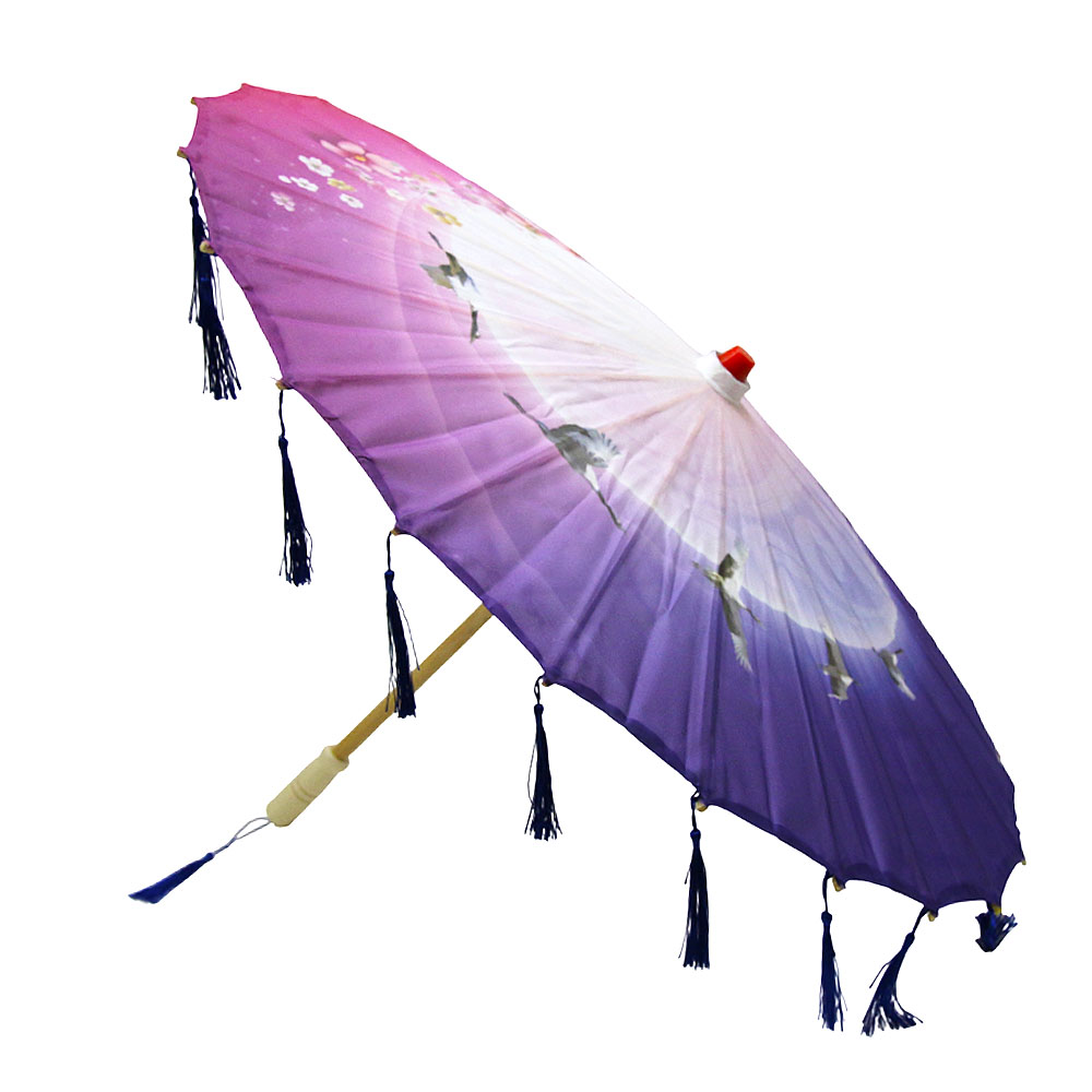 Китайский тканевый зонтик цветочный с кисточками 82х54см, №4
