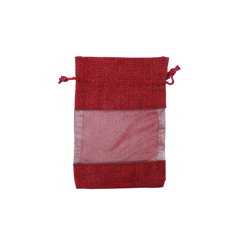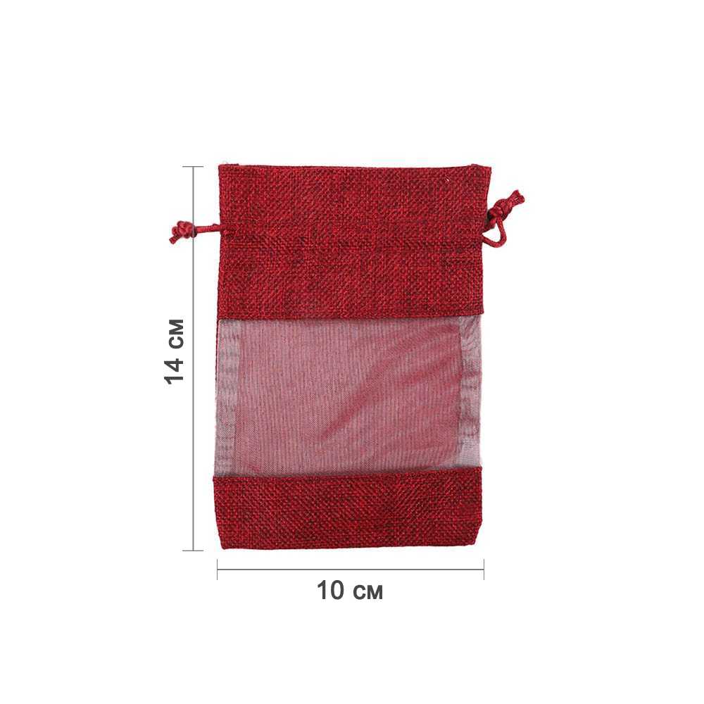 Мешочек из мешковины и органзы 10х14 см бордовый
