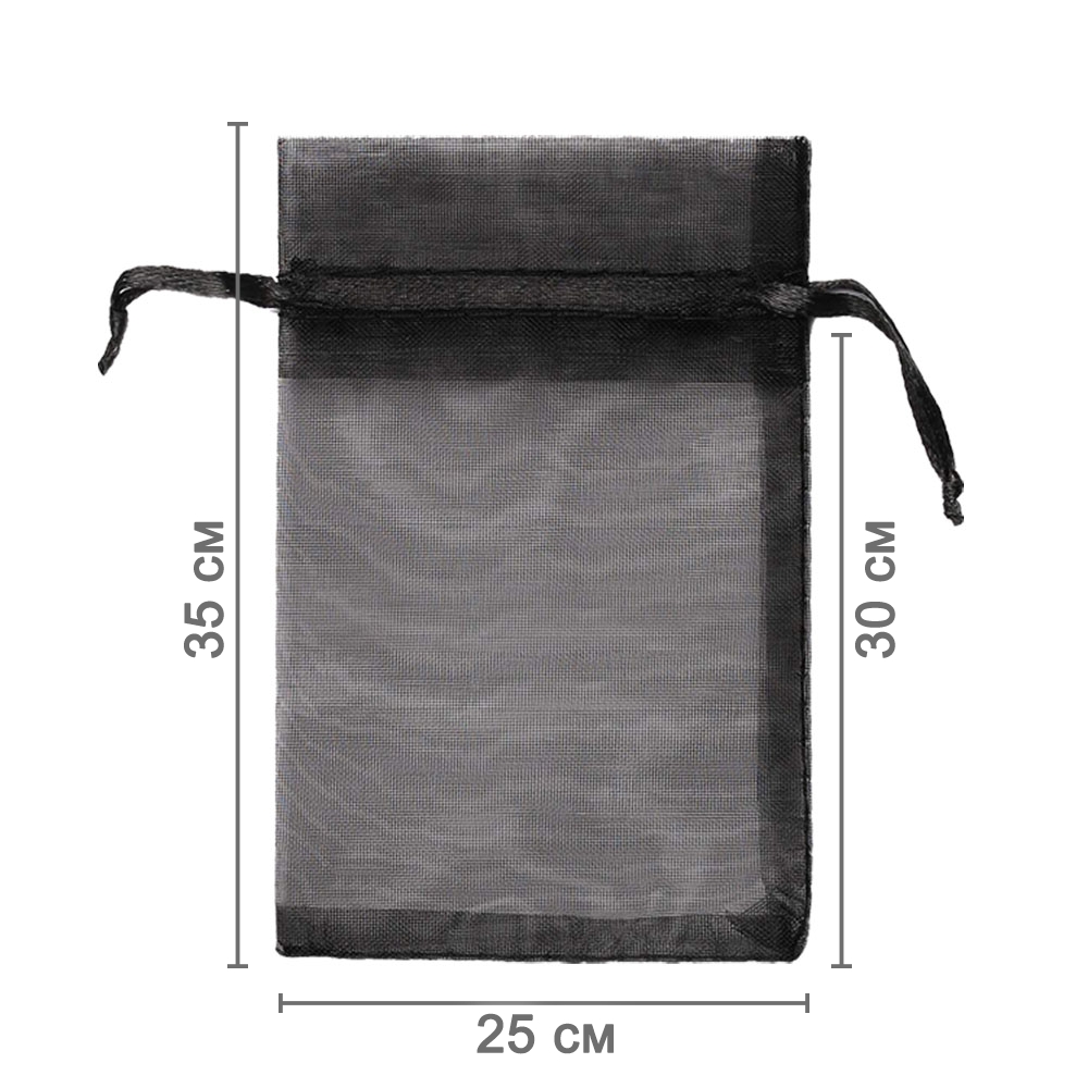 Мешочек из органзы 25 х 35 см — практичный аксессуар для упаковки крупных предметов и подарков. Лёгкая ткань подчёркивает содержимое и придаёт праздничный вид.