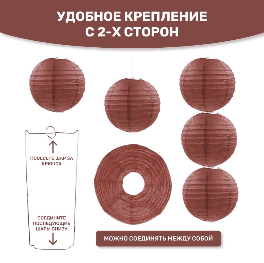 Комплект подвесные фонарики 35 см х 8 шт, коричневый