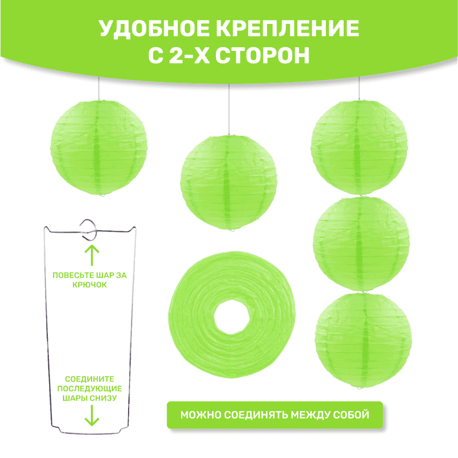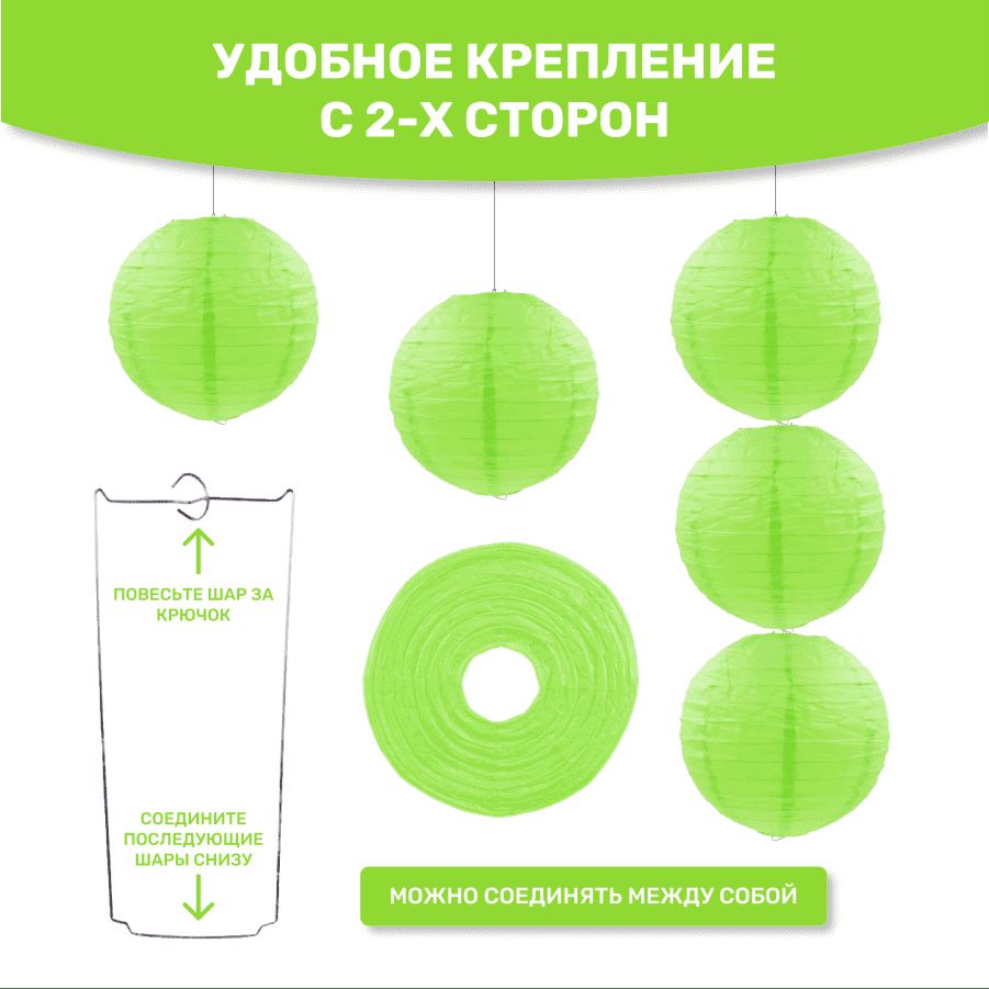 Комплект подвесные фонарики 35 см х 8 шт, салатовый