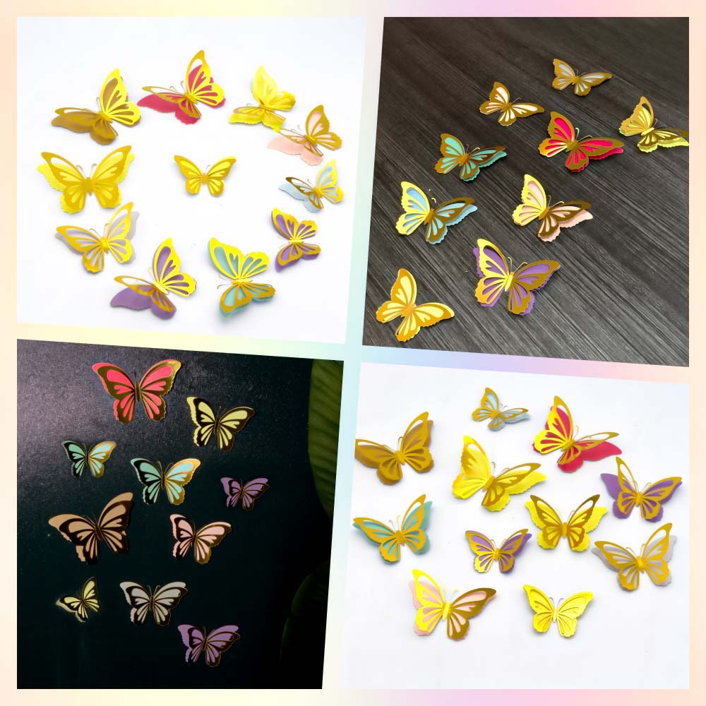 Наклейки Бабочки двойные перламутровые бумажные № 6 12 шт золото+черный