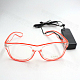 Светодиодные очки имеют прозрачную оправу, прозрачные линзы. Работают от двух батареек 2АА