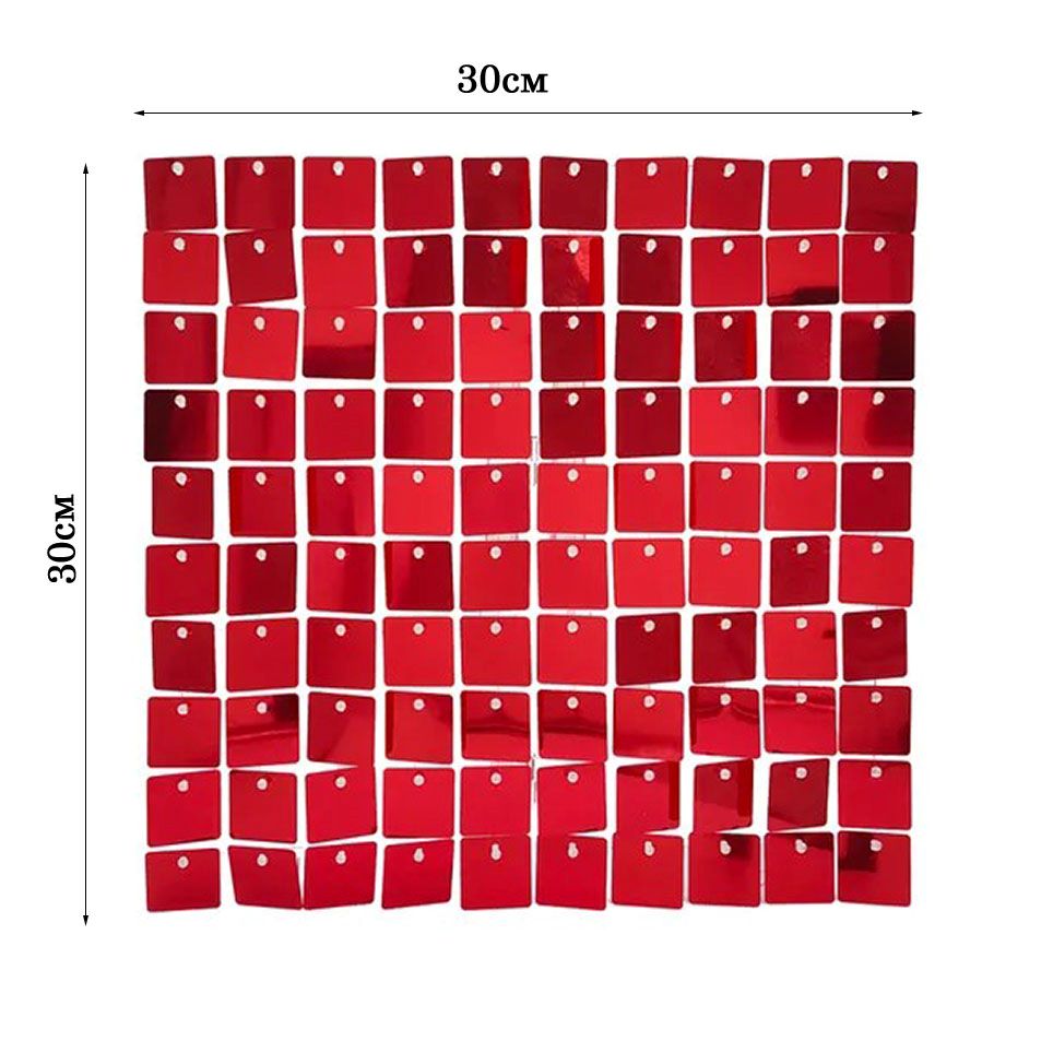 Панель с пайетками 30×30 см на гибкой пластиковой основе. Пластик прочный, хорошо гнётся и не ломается при сгибании. Пайетки переливаются при движении. Панель крепится к стенам, каркасам или соединяется с другими такими же панелями.