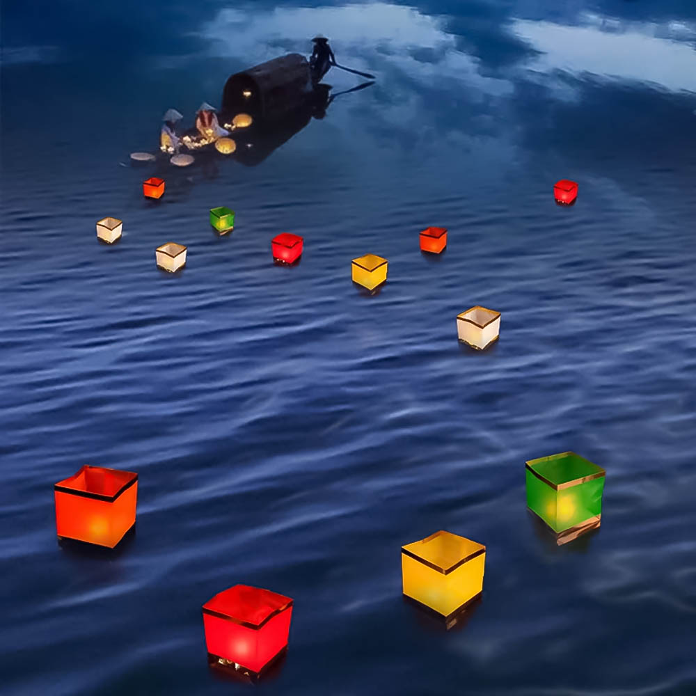 Плавающий фонарик "Куб" 15х15 см золото+оранжевый
