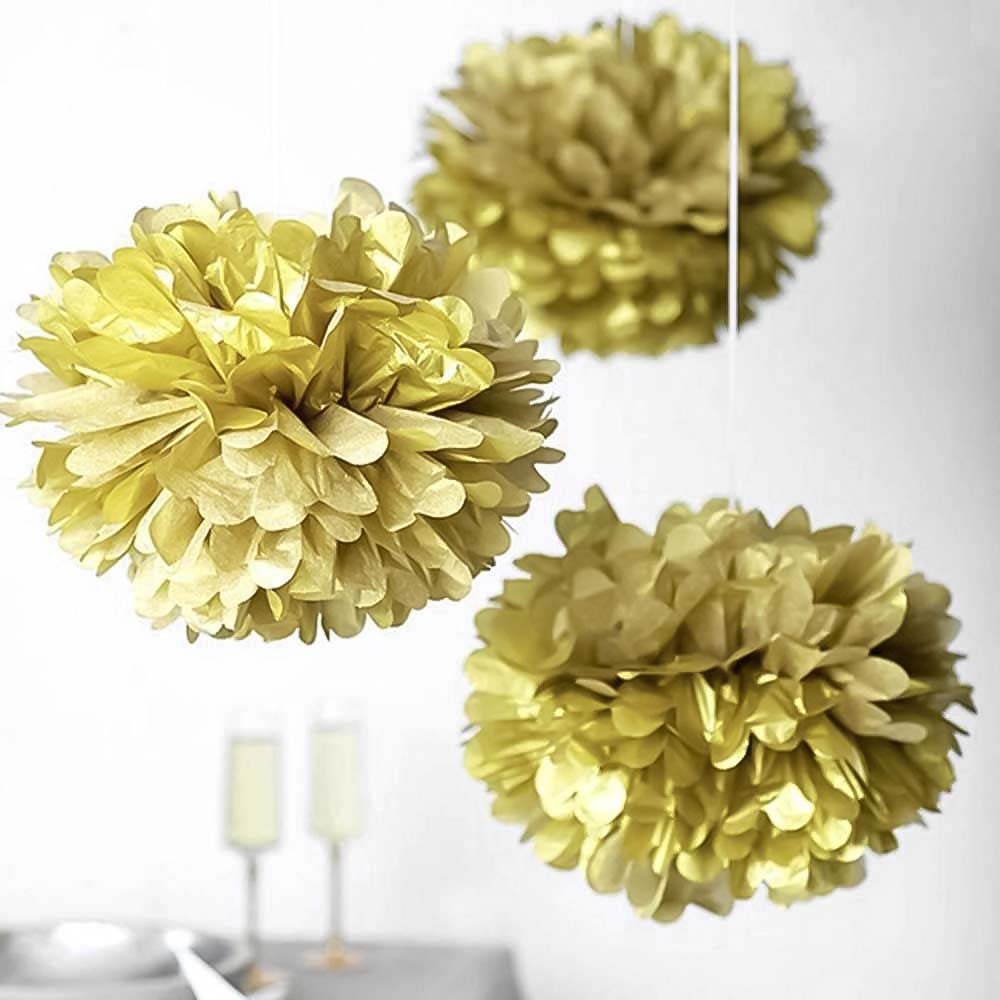 Золотой бумажный помпон диаметром 25 см — стильное и лёгкое украшение для праздников, фотозон, витрин и интерьера. Отлично подойдёт для дней рождений, свадеб, вечеринок и тематических мероприятий.