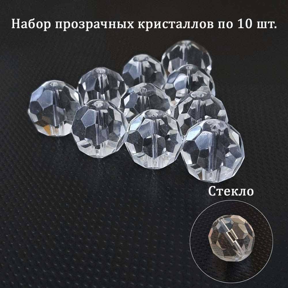 Набор прозрачных кристаллов "Граненый круг" 10 штук по 20 мм подойдет для творчества и оформления декора.
