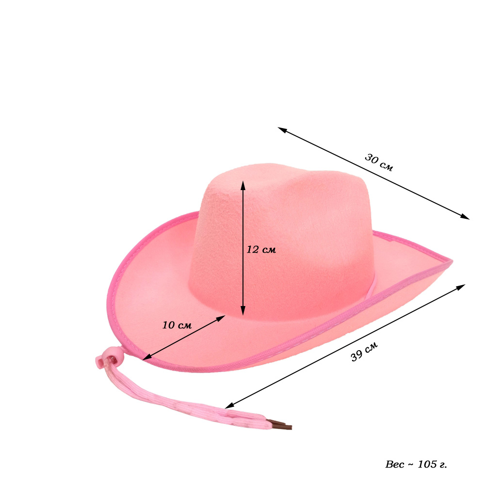Шляпа ковбойская, св.розовый - 1 шт.
