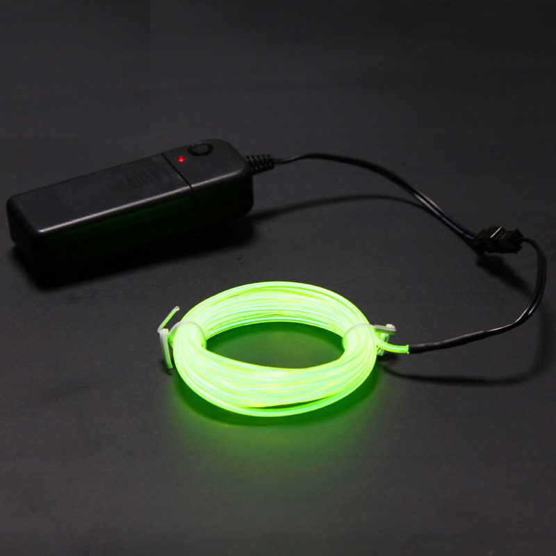 В комплекте с EL проводом, длинной 3 метра,  идет бокс с питанием от батареек, что позволяет его применять где угодно, даже на улице.  Работает от 2-х батареек 2АА (батареек в комплекте нет).
