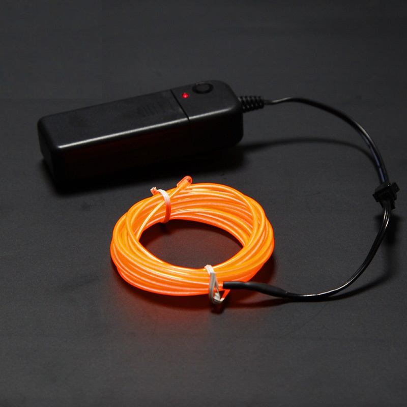В комплекте с EL проводом, длинной 4 метра,  идет бокс с питанием от батареек, что позволяет его применять где угодно, даже на улице.  Работает от 2-х батареек 2АА (батареек в комплекте нет).