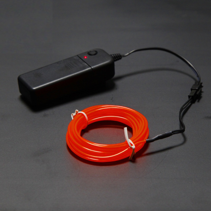 В комплекте с EL проводом, длинной 5 метра,  идет бокс с питанием от батареек, что позволяет его применять где угодно, даже на улице.  Работает от 2-х батареек 2АА (батареек в комплекте нет).