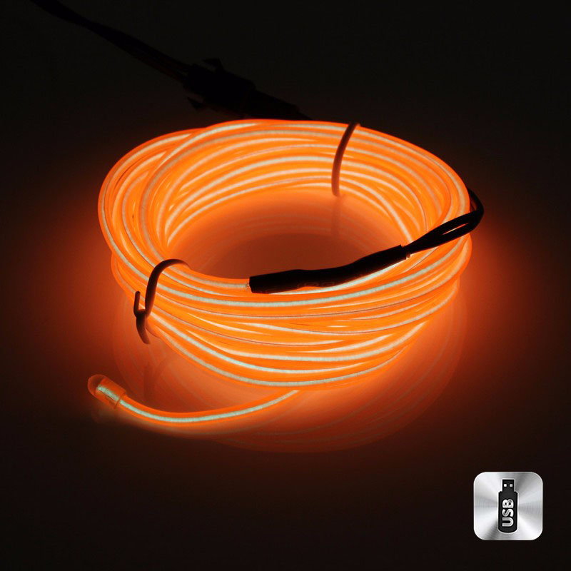 Шнур неоновый светящийся от USB 3 м, оранжевый