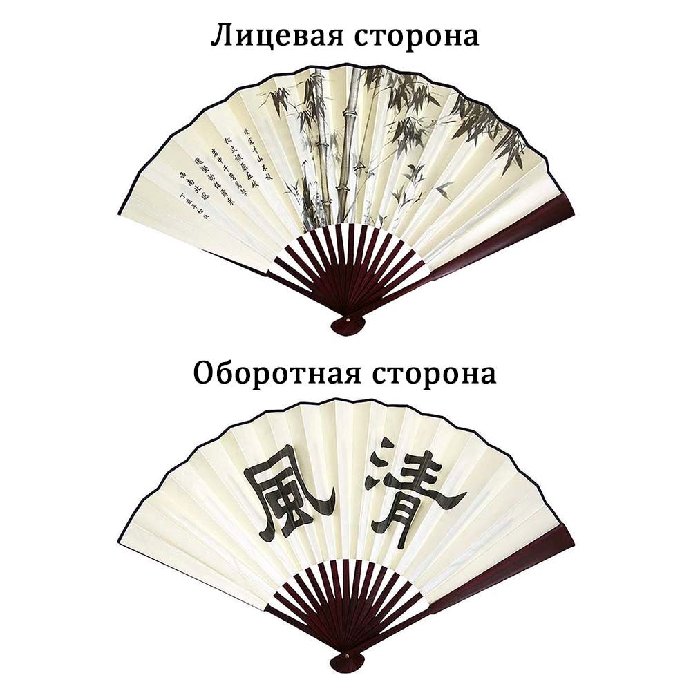 Двухсторонний складной веер для танца. Выполнен из бамбука и плотной ткани, обладает профессиональным тугим ходом.