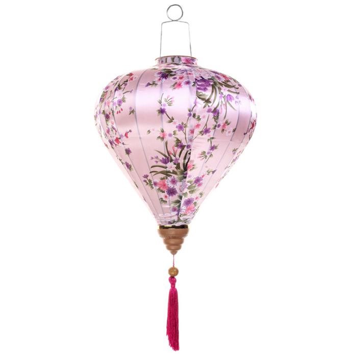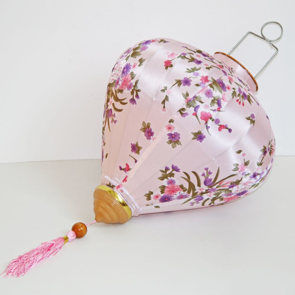 Это традиционные подвесные фонарики ручной работы, изготовленные из шелкового материала с элегантным цветочным узором, которые делают его изысканным и красивым.