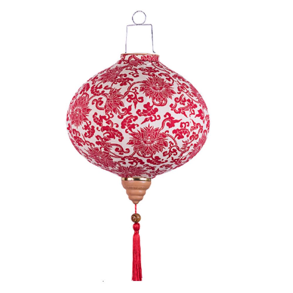 Коллекция подвесных фонарей ручной работы. Конструкция из шелкового полотна с цветочным орнаментом, металлического каркаса и подвесной системы. Модель в бело-красной цветовой гамме.