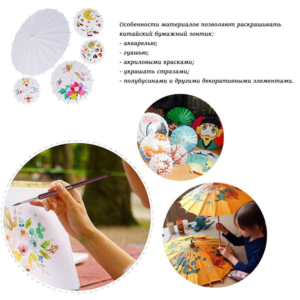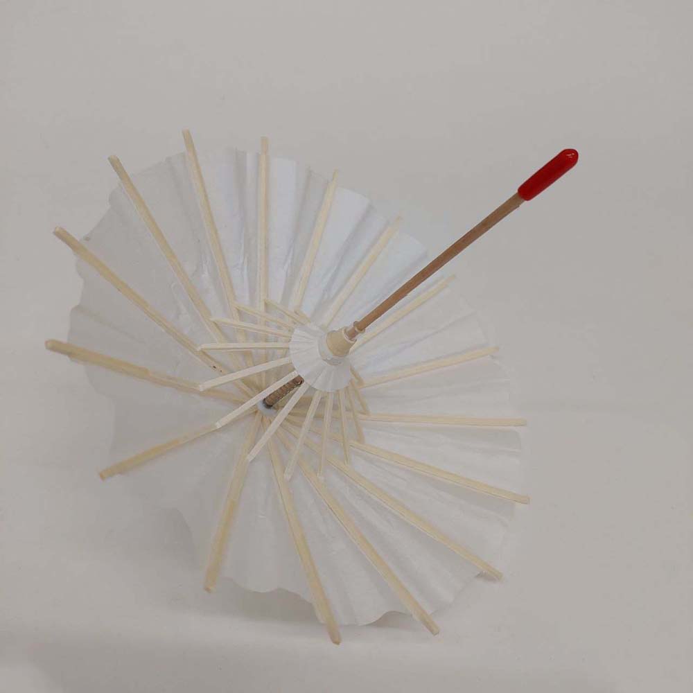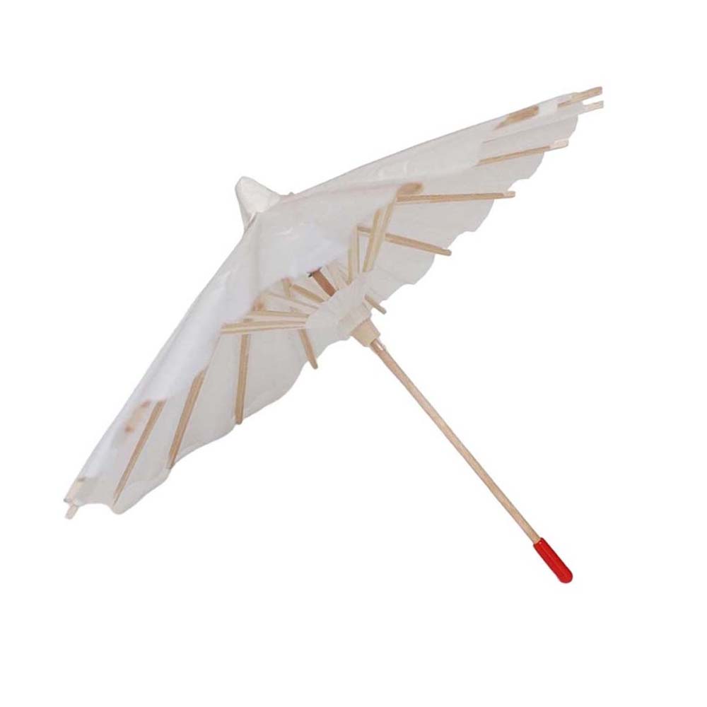 Каркас зонтика выполнен из дерева,купол зонта изготовлен из бумаги.