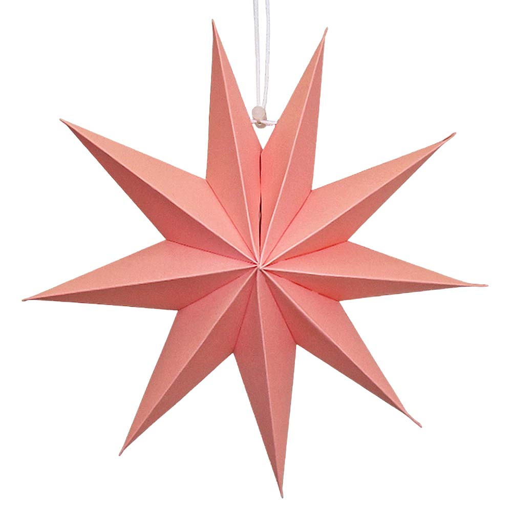 Объёмная декоративная звезда из картона диаметром 30 см с 9 лучами. Оснащена встроенным шнурком для подвешивания. Поставляется в компактном сложенном виде и быстро собирается: специальный шнурок при затягивании придаёт изделию объём и фиксирует форму. После сборки звезда остаётся устойчивой без дополнительных креплений и может использоваться многократно.