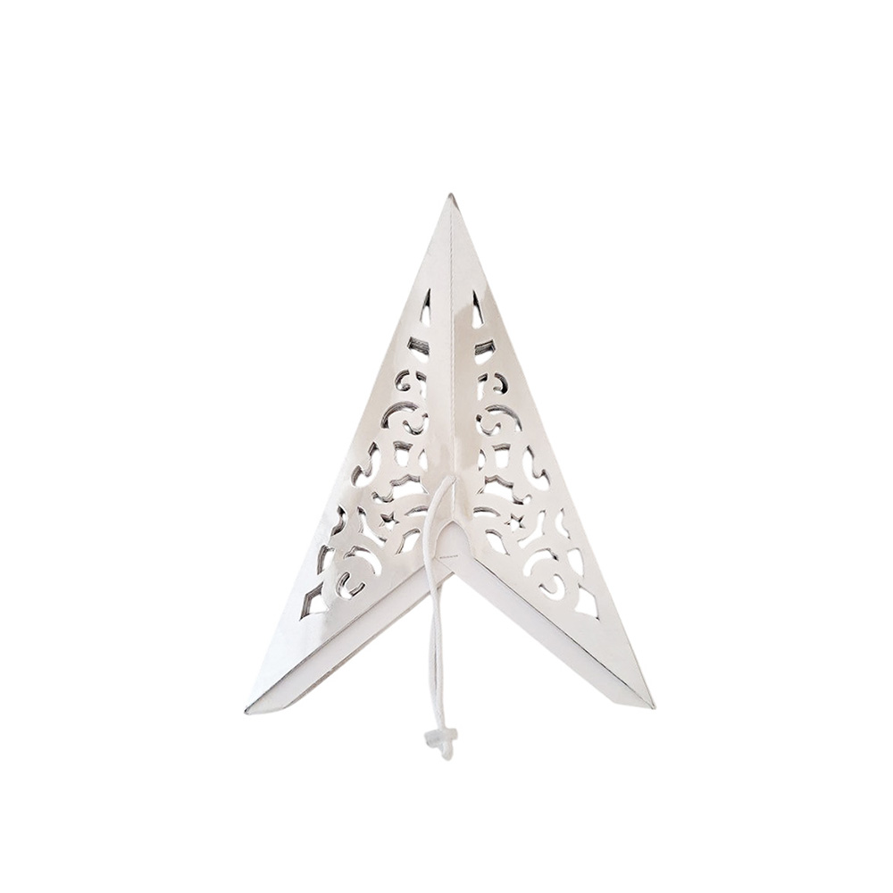 Аккуратно расправьте лучи, чтобы придать звезде идеальную объемную форму, затем зафиксируйте встроенным шнуром для подвеса.